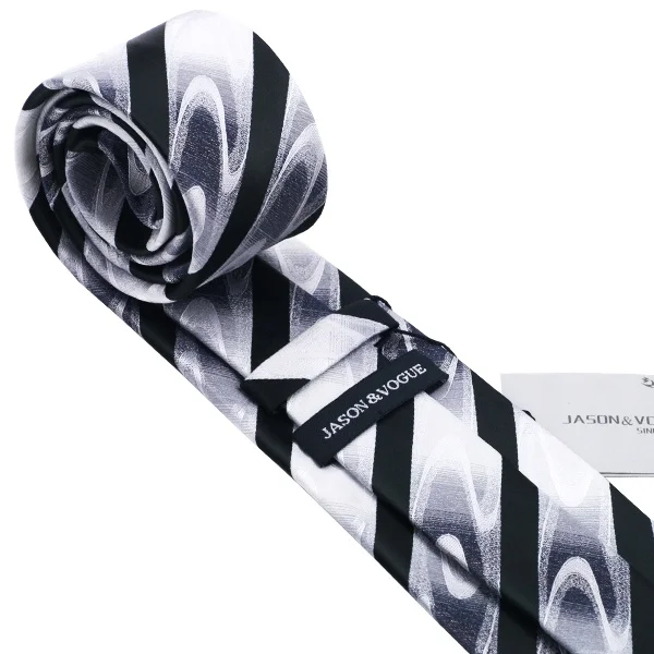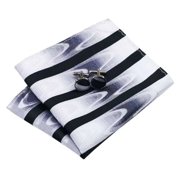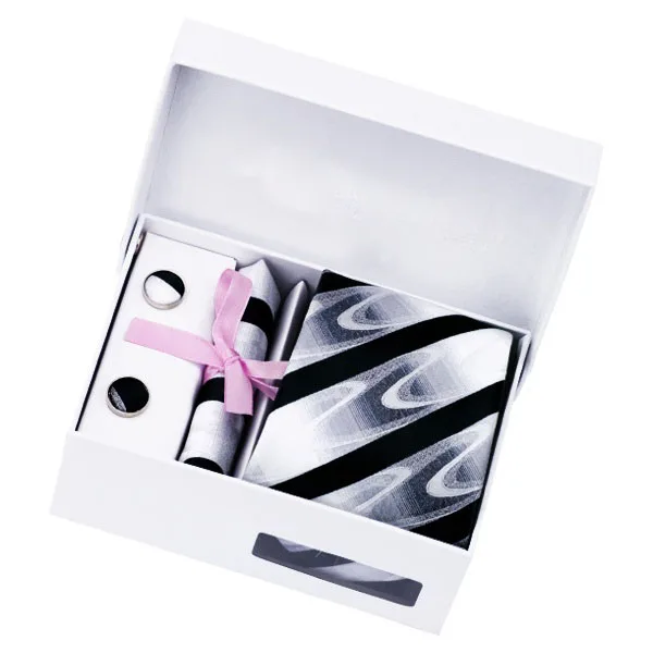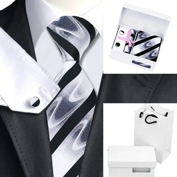 | [해외]HN-1081 뜨거운 판매 블랙 화이트 넥타이 손수건 커프스 단추 선물 상자 가방 세트 남성 실크 넥타이 웨딩 파티 신랑 |