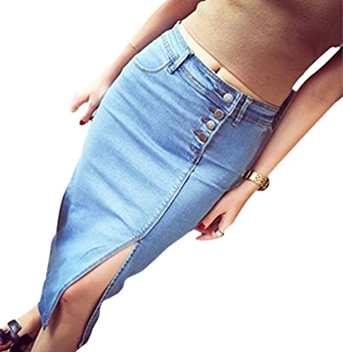 -. Feature : 一年中使えて定番人気!! 柔らかストレッチデニムのペンシルスカートです。 / 縦に並ぶボタンとすっきりしたIラインシルエットで脚長美脚でスタイルアップに期待大♪ / フロントスリットからちらっと見える足と丸みのあるヒップラインで女性らしさアップ! ロング丈スカートでもスリットがあるのでもたつかずスリムなイメージに♪ / 洗いざらしが素肌に気持ちいいスカートです。サンダルやtシャツと合わせてカジュアルに。ヒールや大振りアクセサリーと合わせてドレッシーに♪ 普段使いにも旅行先でも大活躍する一枚です! ボタンを留めた上で手洗い推奨。初めての洗濯は他の物と分けてデニム特有の洗い色落ちがないか確認してください。 / サイズ S: ウエスト66cm ヒップ78㎝ スカート丈66㎝ M:ウエスト65㎝ ヒップ82㎝ スカート丈 67㎝ L: ウエスト76㎝ ヒップ 92㎝ スカート丈70㎝  XL: L: ウエスト78㎝ ヒップ 95㎝ スカート丈73㎝  ストレッチ素ですがウエストは二重に縫製されているためプラス3㎝程の伸縮性です。