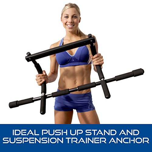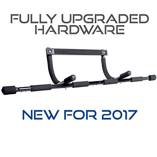 It's easy to build a complete bodyweight home gym with the portable Doorway Mount Pull Up Bar by Ultimate Body Press. Expandable bar ends make the Doorway Pull Up Bar a universal fit for most residential doorways without screws or drilling. Your doorway opening gives you full range of motion for pull ups and expanded exercises with optional accessories like suspension trainers and ab straps (accessories sold separately). Three grip positions target individual muscle groups across the chest, arms, back and core with a super quick change over to floor exercises as a push up and dip stand and as a brace for sit ups. Assembly is straight forward with all hardware and tools provided and you can shop with confidence, the Doorway Pull Up Bar is backed with our 100% satisfaction guarantee.