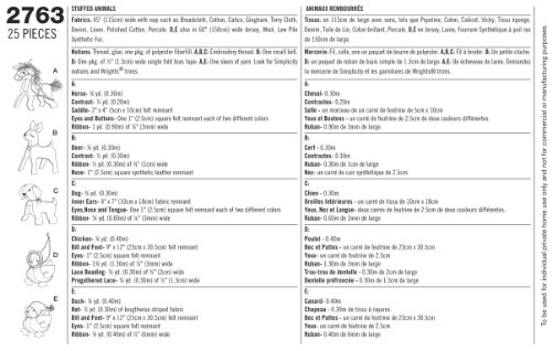 -. Feature : Crafts in size os (one size), simplicity pattern 2763 / Number of looks included:5 / Designed and manufactured in theusa / Sested Fabrics: 45-Inch (115cm) wide with nap such as Broadcloth, Cotton, Calico, Gingham, Terry Cloth, Denim, Linen, Polished Cotton, Percale; D,E also in 60-Inch (150cm) wide Jersey, Wool, Low Pile Synthetic Fur