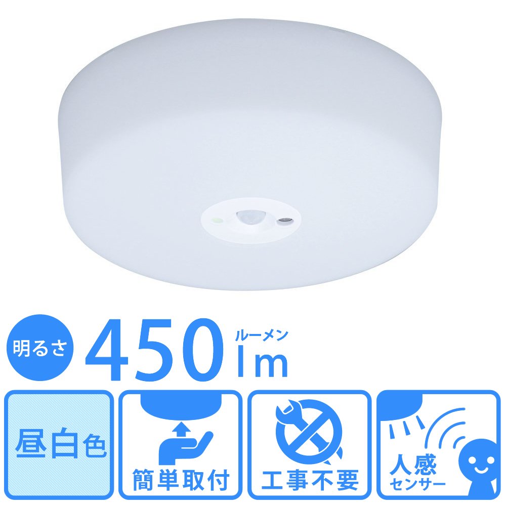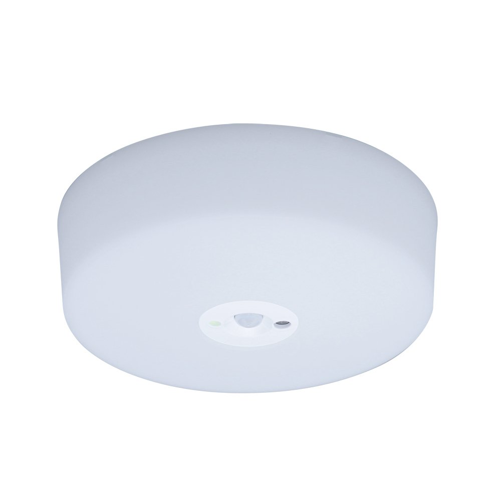 Sensor attached LED compact ceiling light that senses people and turns them on and off automatically.