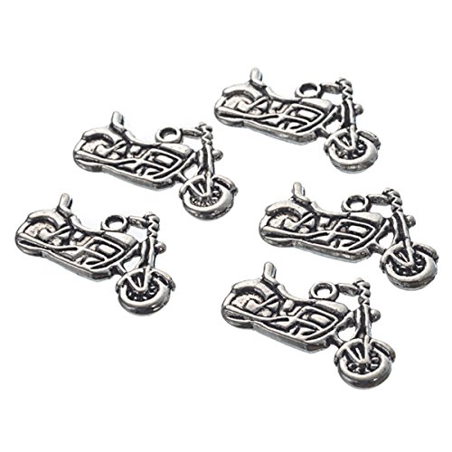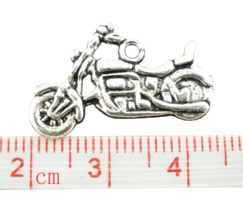 Housweety 30Pcs Silver Tone Motorcycle Charms Pendants 24x14mm