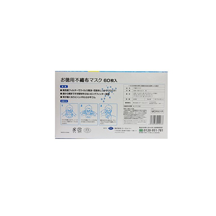 원본상품명: BMC(ビ?エムシ?) お?用不織布マスク ふつうサイズ 60枚入