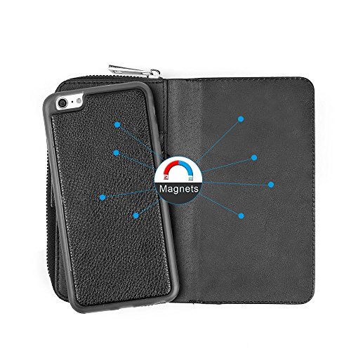 iPhone 6 Plus Wallet Case -Egrace Magnetic Detachable Removable Wallet Zipper PU Leather Case with Strap and Card Slot for iPhone 6plus 2015
