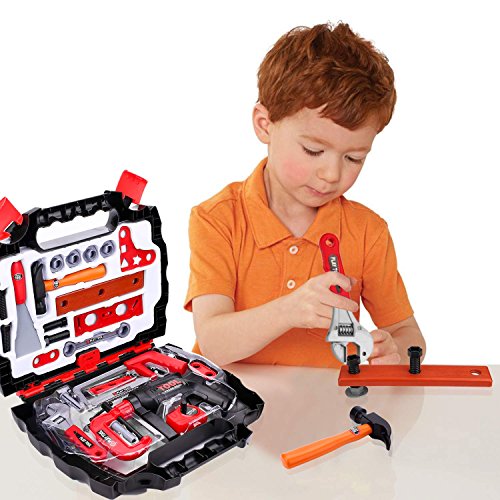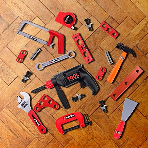 This 24 pieces tool set for kids contains: