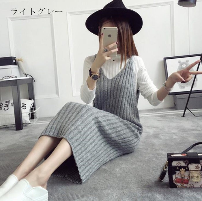 【キーワード】ワンピース レディース 40代 ニットワンピース ロング キャミソールワンピース 大きいサイズ ニット ワンピース 秋 レディース ニットワンピース 冬 Vネック ロングワンピース ノースリーブ 秋冬 コーデ オシャレ 20代 30代 40代 キャミワンピース ジャンパースカート ロング ニットワンピ リブニット 【生産地】:中国【素材】:ボリエステル【カラー】:ライトグレー ダークグレー 茶色【サイズ(単位cm)】:F:バスト82 着丈100