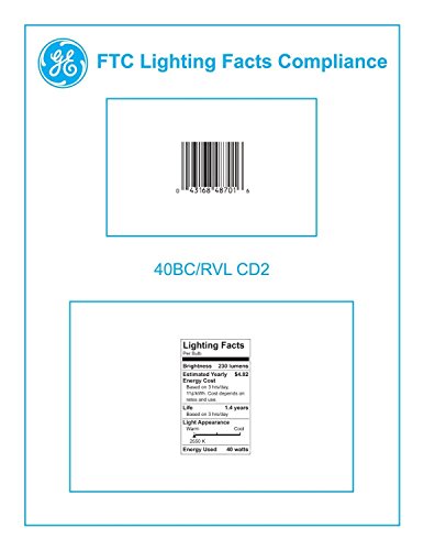 GE Lighting 48701 40-Watt Reveal Blunt Tip B10, 6-Pack