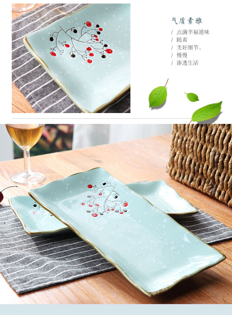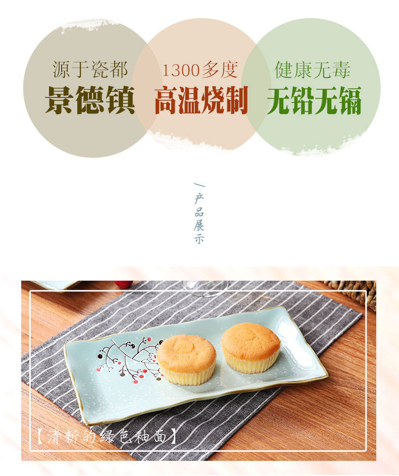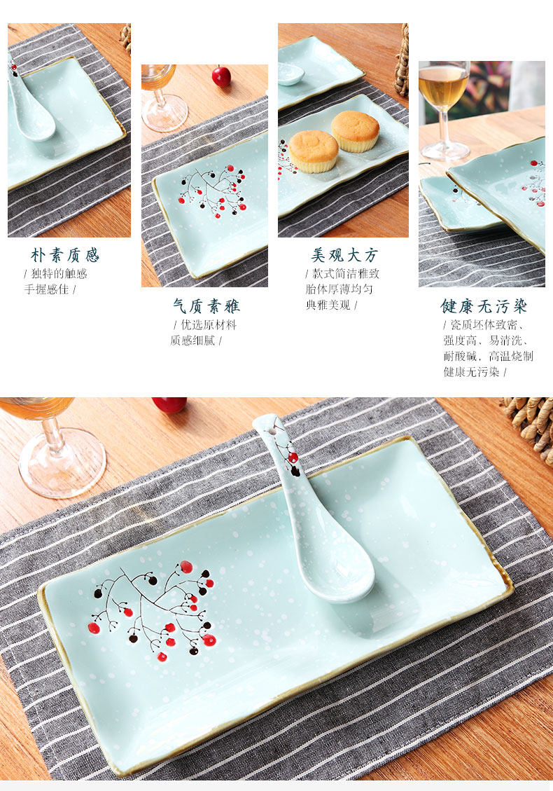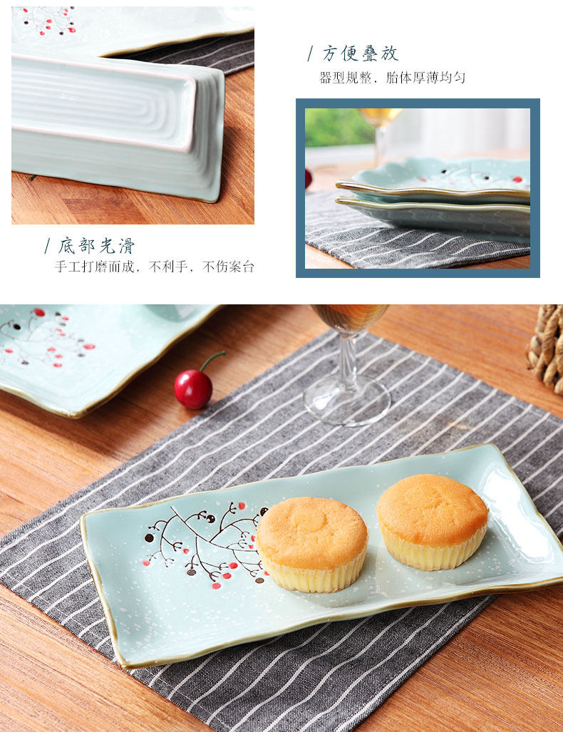 陶瓷长方形盘家用点心盘日式菜盘创意餐具套装零食小吃碟早餐盘子