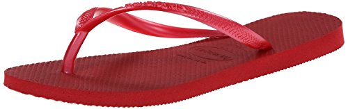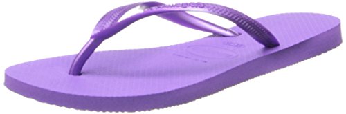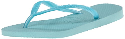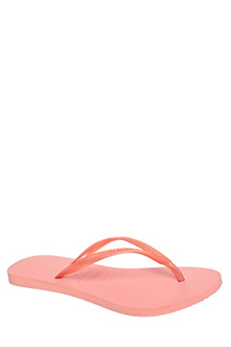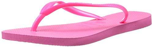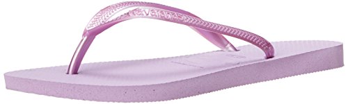 The Slim features a sleek metallic strap for a fresh, on-trend look. A tonal Havaianas logo and our signature textured footbed provide style and comfort. Thong style Cushioned footbed with textured rice pattern and rubber flip flop sole Made in Brazil