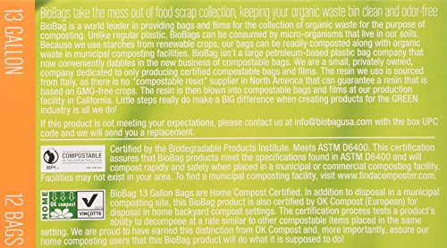 BioBag 13 Gallon Tall Kitchen Waste Bag, 12 CT (Full Case of 12 Boxes, 144 Bags Total)