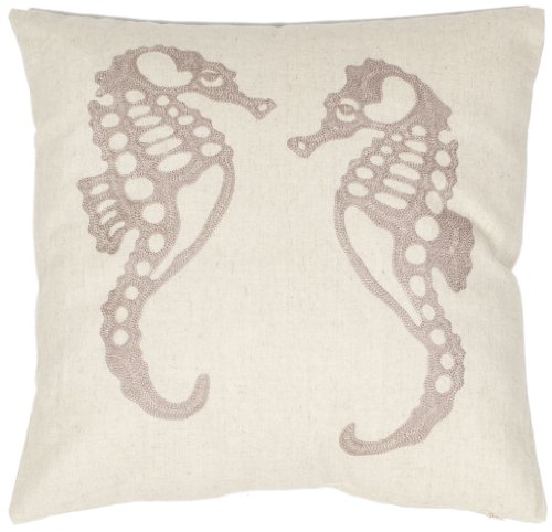 Safavieh Pillow Collection Majestic Seahorse 18-Inch Cream and Taupe Embroidered Decorative Pillows, Set of 2