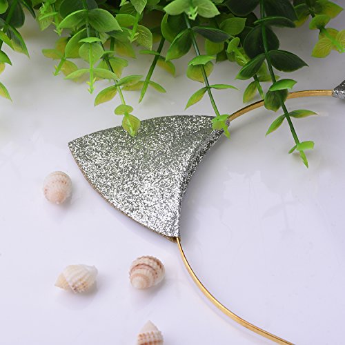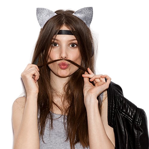 Mudder Glitter Cat Ears Headbands Cats Ear Hair Hoops Clasps for Party and Daily Wearing, Black and Silver, 2 Pieces