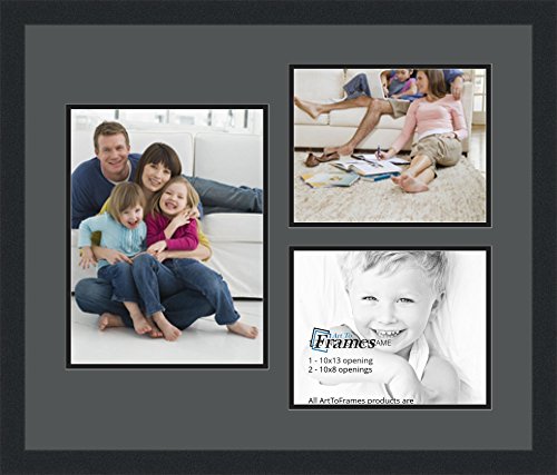 Art to Frames Double-Multimat-1131-41/89-FRBW26079 Collage Photo Frame Double Mat with 1 - 10x13 and 2 - 8x10 Openings and Satin Black Frame