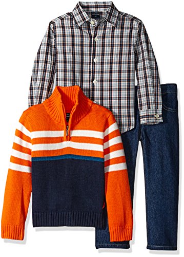 Nautica Little Boys' Toddler Three Piece Set With A Woven Shirt Quarter Button Sweater and Pant, Orange, 3T