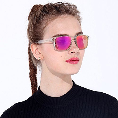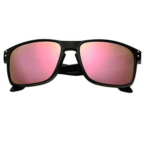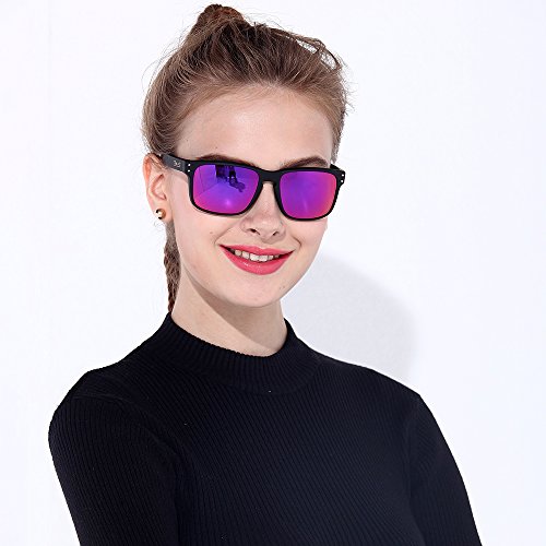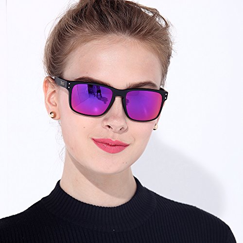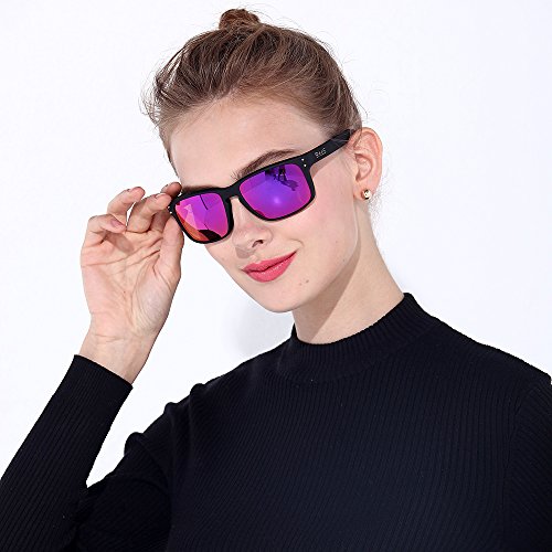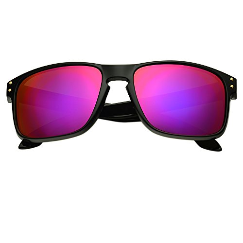 B.N.U.S Fashion Sunglasses Square Matte Black Magenta Mirror Polarized Lenses for Women (Frame: Matte Black, Polarized Magenta Flash)