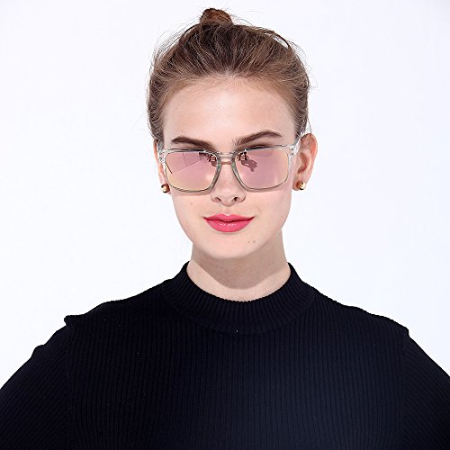 BNUS Italy made Classic Sunglasses Corning Real Glass Lens w. Polarized Option (Frame: Transparent / Lens: Pink Flash, Polarized)