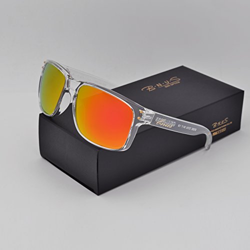 BNUS Italy made Classic Sunglasses Corning Real Glass Lens w. Polarized Option (Frame: Transparent / Lens: Orange Flash, Polarized)