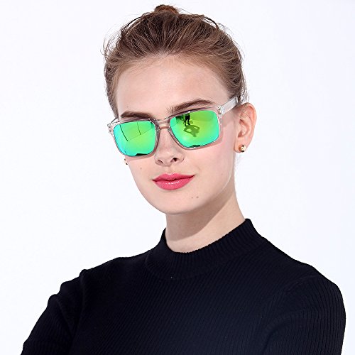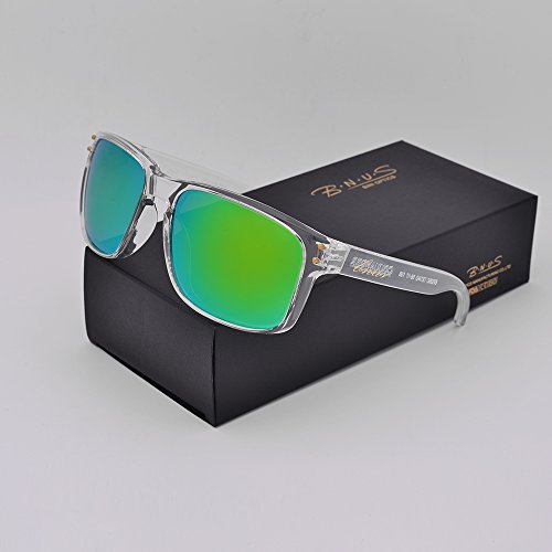 BNUS Italy made Classic Sunglasses Corning Real Glass Lens w. Polarized Option (Frame: Transparent / Lens: Green Flash, Polarized)