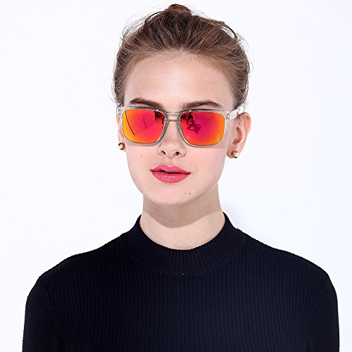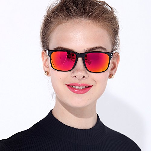 B.N.U.S Fashion Sunglasses Square Black Magenta Mirror Polarized Lenses for Women (Frame: Black, Polarized Magenta Flash)