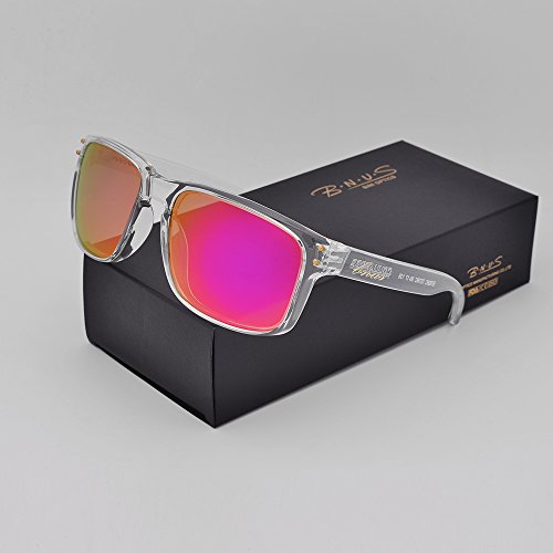 BNUS Italy made Classic Sunglasses Corning Real Glass Lens w. Polarized Option (Frame: Transparent / Lens: Magenta Flash, Polarized)