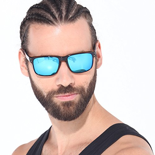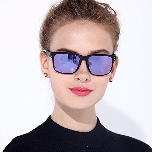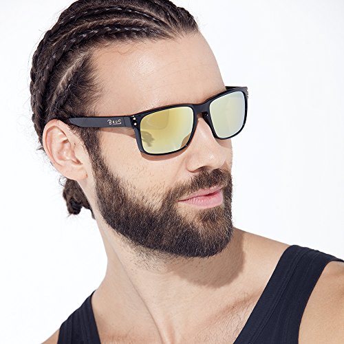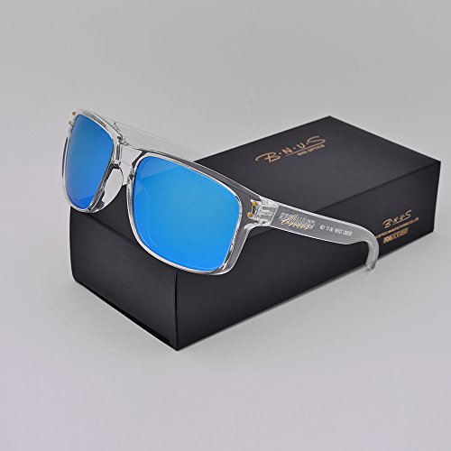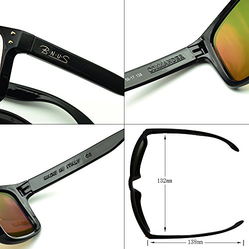 B.N.U.S Shades for men women fashion blue mirrored lenses Polarized (Frame: Black, Polarized Blue Flash)