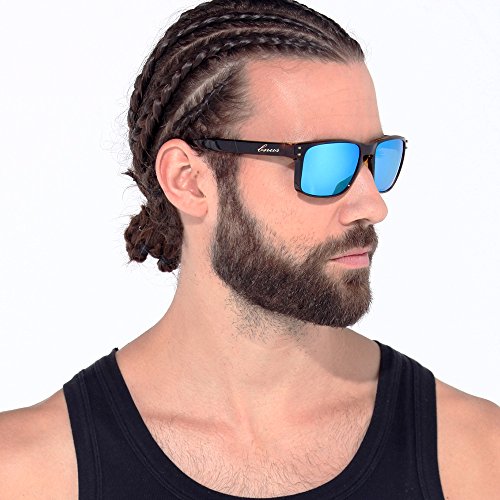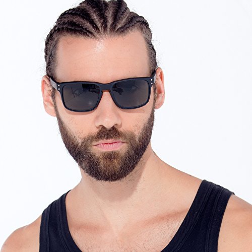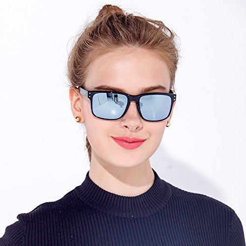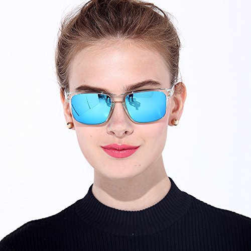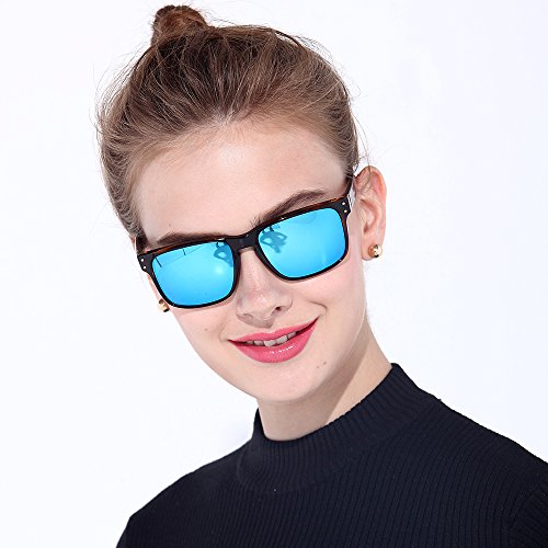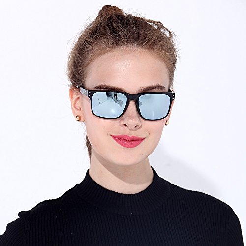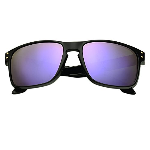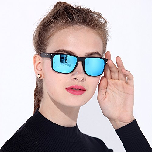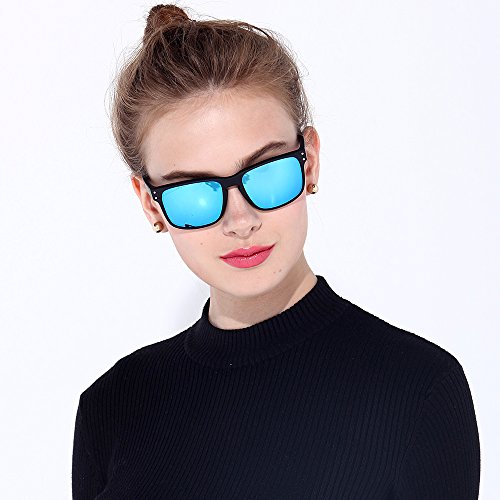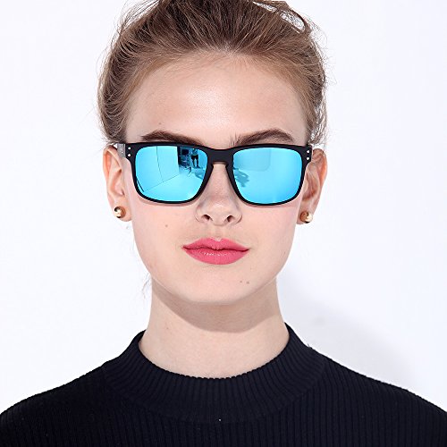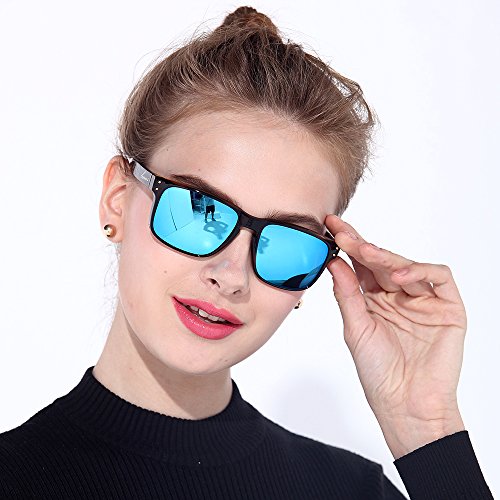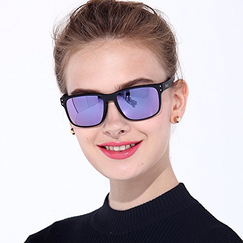 eyewear Shades fashion blue glass lenses Polarized for Men and Women (Frame: Matte Black, Polarized Blue Flash)
