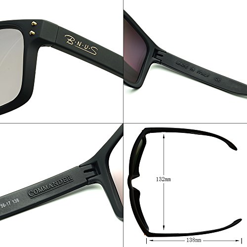 B.N.U.S Sunglasses Shades for men women Sliver mirrored lenses Polarized (Frame: Black, Polarized Sliver Flash)