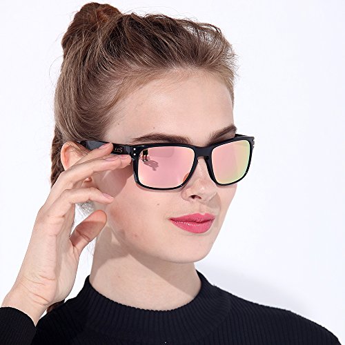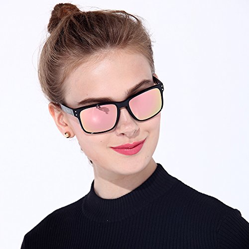 B.N.U.S Hipster Fashion Pink Flash Color Mirror glass polarized Lens Square Matte Black Classic Sunglasses For Women (Frame: Matte Black, Polarized Pink Flash)