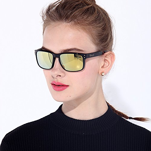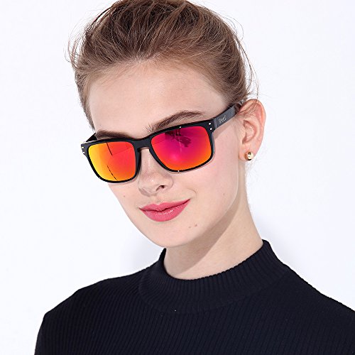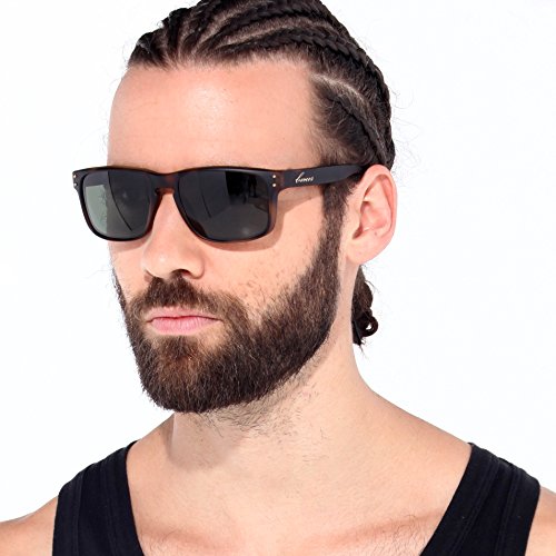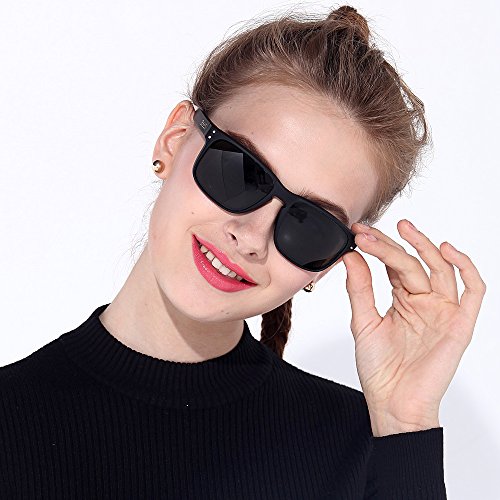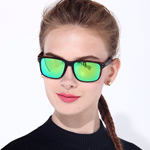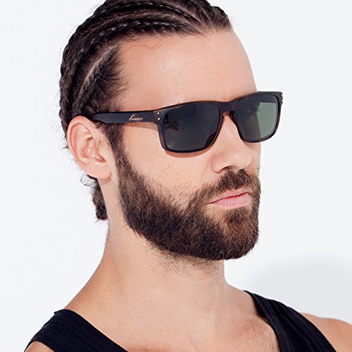 BNUS sunglasses for men and women wayfarer polarized mirrored glass lenses (Frame: Black, Polarized Green Flash)