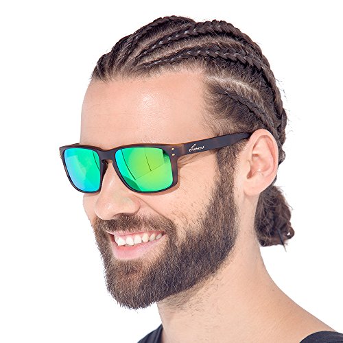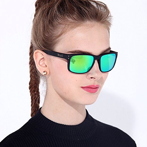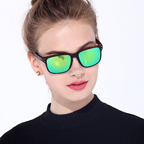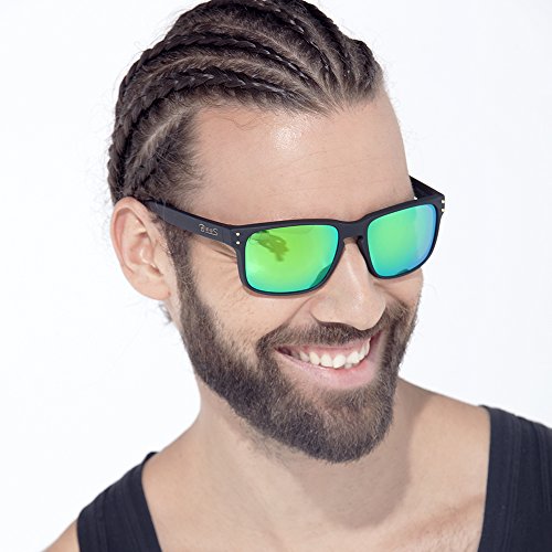 BNUS Sunglasses polarized Shades for men women green mirrored lenses (Frame: Matte Black, Polarized Green Flash)