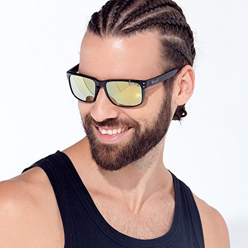 B.N.U.S Shades for men Sports yellow mirrored lenses (Frame: Matte Black, Yellow Flash)
