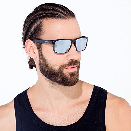 B.N.U.S Shades for men and women fashion silver mirrored lenses Polarized (Frame: Matte Black, Polarized Sliver Flash)