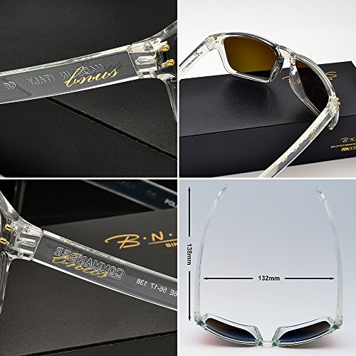 BNUS Italy made Classic Sunglasses Corning Real Glass Lens w. Polarized Option (Frame: Transparent / Lens: Blue Flash, Polarized)