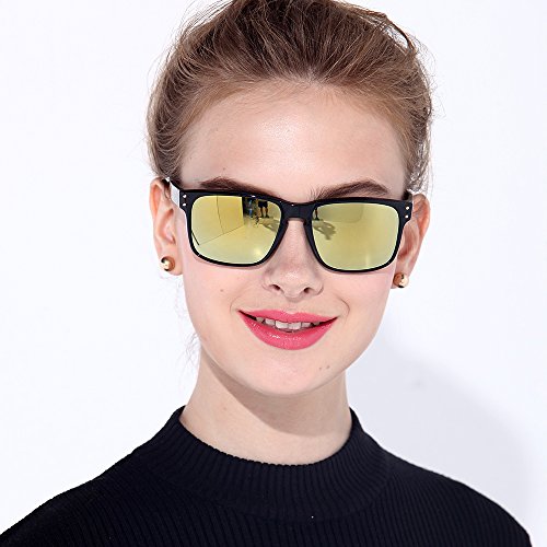 B.N.U.S Italy made Classic Sunglasses Corning Real Glass Polarized Lens.Retro Square Sunglasses Neutral Black Women and Men (Frame: Black, Polarized Yellow Flash)