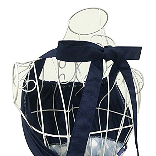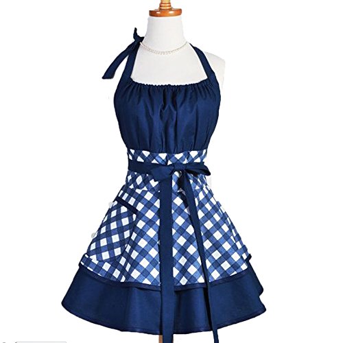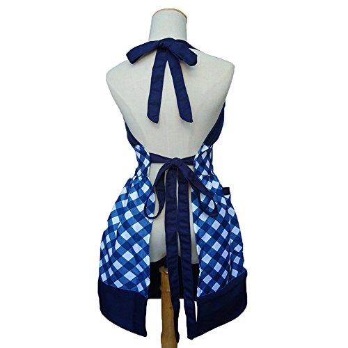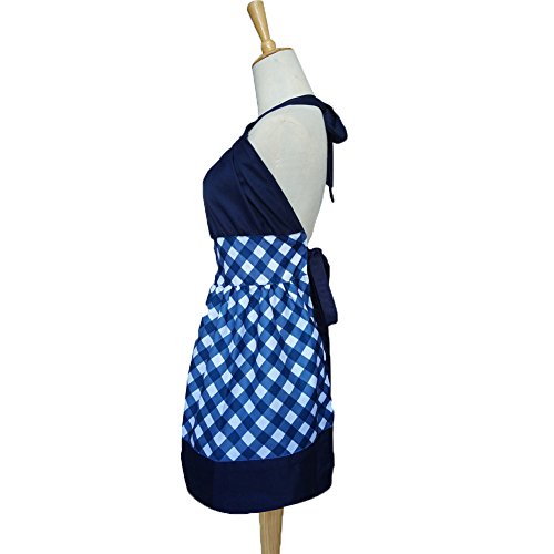 Lanyin Aprons for women Plus Size,Cotton Vintage Cooking Aprons Retro Bib Kitchen Apron With Extra Ties&Pockets 22x30 inch-Blue