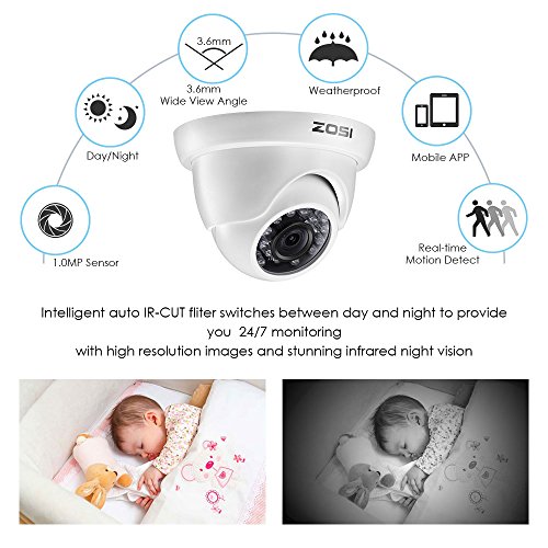 -. Binding : Electronics -. Brand : ZOSI -. Color : 43KIT4-W-6+08DE00+2526 -. EAN : 0702082637920 -. Feature : (1). QR code scan via mobile device using our free ZOSI View app (available on iOS/Android).Live view and playback on your smartphone. / (2). 720P AHD Video - Get a sharp and crisp image day or night with the Weatherproof camera's automatic IR-cut filter. Up to 65ft night vision. / (3). Intelligent motion detection email alert with images; Motion detection recording allows you save more capacity hard drive(1TB hard drive Built-in,20g/day/CH for 720P) / (4). Ultra long continuous recording & easy USB backup:The DVR can be set to automatically overwrite the oldest stored footage,and you can backup the records via the USB backup / (5). All systems CE & FCC certified with qualified power supplies.Guaranteed for 2 Year & Free life time Tech Support.//// Please refer to the last product images on the left side ,it will show you how to contact us for help ! Definitely respond within 24 hours! -. IsAutographed : 0 -. Label : ZOSI SECURITY -. Manufacturer : ZOSI SECURITY -. Model : 4*ZG2526E+4*ZM4326E-W+ZR08DE00 -. MPN : 4*ZG2526E+4*ZM4326E-W+ZR08DE00 -. PackageQuantity : 1 -. PartNumber : 4*ZG2526E+4*ZM4326E-W+ZR08DE00 -. ProductGroup : Photography -. ProductTypeName : SURVEILANCE_SYSTEMS -. Publisher : ZOSI SECURITY -. Studio : ZOSI SECURITY -. Title : ZOSI 8-Channel Security System 720P DVR Recorder with 1TB Hard Drive and Day Night 720P Weatherproof Cameras -. UPC : 702082637920