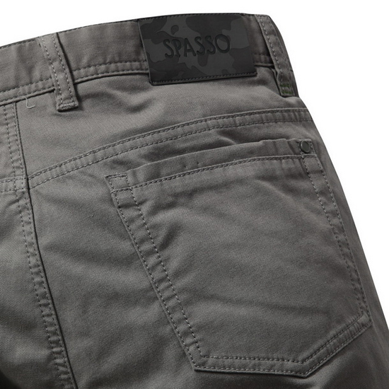 - 뒷 허릿단 불박 로고 가죽 패치로 포인트를 더해줌.