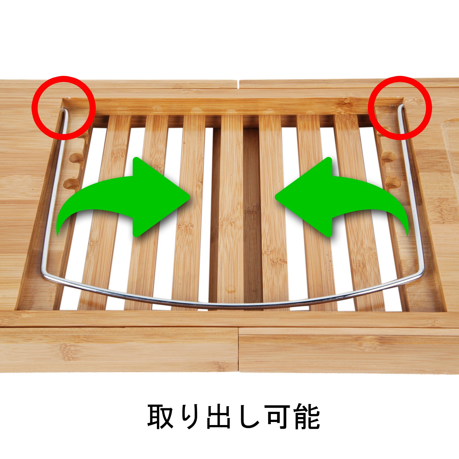 • It can be stretched and shrunk like the picture according to the width of the bathtub, it can be hung on a bathtub up to 106 cm.