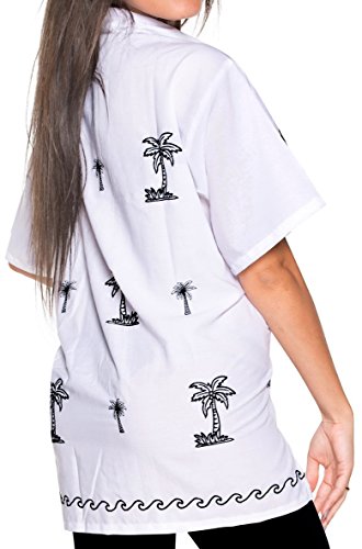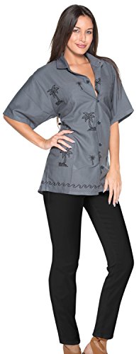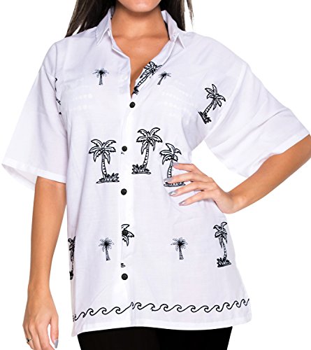 -. Title : La Leela Women Hawaiian Shirt Embroidered Blouses Casual Workwear Boyfriend Dress Top