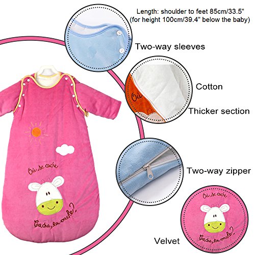 -. Title : Autumn Winter Double Zipper Cute Smile Cartoon Swaddle Blanket Newborn Quilt Removable Long Sleeve Blankets Holds,For Infant Kids,Blue/Pink(6-18 month)