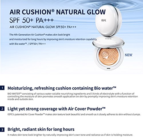 -. Feature : 2016 New Iope Air Cushion Natural Glow W21 Warm Beige 0.53oz(15g)+Refill 0.53oz(15g) / Natural Glow(C13, N21, W21, N23, W23) : Makes skin look naturally radiant and bright as it softly adheres to skin.