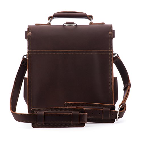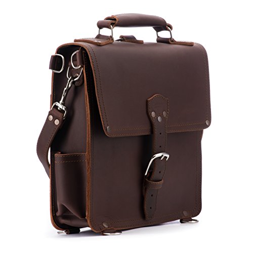 -. Feature : 100% FULL-GRAIN BOOT LEATHER: Crafted from tough, 100% Full-Grain Boot Leather, which takes hits well and looks even better with age. Full-Grain is the top layer of the cow skin which is the most expensive and toughest part. Thicker and more durable than the typical Ògenuine leatherÓ Messenger Bags. The leather becomes soft and supple as it ages. / STITCHED AND REINFORCED: Stitched with polyester thread that is used in airbags, ship sails and hiking boots. Polyester is about 4 times as strong as nylon and is also UV and saltwater resistant. / SMART DESIGN: This messenger bag converts to a backpack & has two exterior pockets and one interior pocket to make it both functional and stylish. Perfect for holding a laptop or macbook. / FOR MEN AND WOMEN: Our classic design is perfect for both men and women. / NO BREAKABLE PARTS: No zippers, snaps, buttons, or plastic. This messenger bag was built to last.