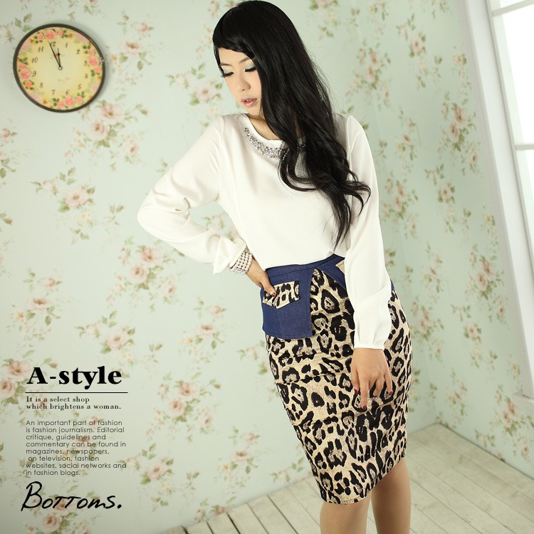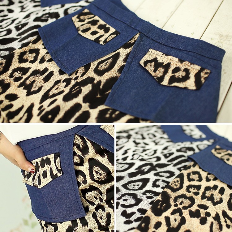 【売り尽くしセール】【メール便送料無料】海外セレブ風ヒョウ柄デニムスカート(新着/ボトムス/ミディアム/アニマル/ドレス)『メール便のため代引き不可、セール品のため返品交換不可』