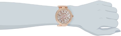Betsey Johnson BJ00214-05 women's watch features a 48mm wide and 11mm thick rose gold ion plated solid stainless steel case with a crystal accented fixed bezel and textured push-pull crown. Betsey Johnson BJ00214-05 is powered by an accurate Japanese quartz movement. This beautiful watch also features a milky white dial with white accents rose gold tone luminous hands and Arabic numeral hour markers, scratch resistant mineral crystal and water resistant to 30 meters. Betsey Johnson BJ00214-05 is equipped with a 20mm wide rose gold ion plated solid stainless steel bracelet with a fold over push button clasp. Betsey Johnson BJ00214-05 women's crystal bezel white dial rose gold steel bracelet watch is brand new and comes in an original Betsey Johnson gift box and is backed by a 2 years limited warranty.Feature