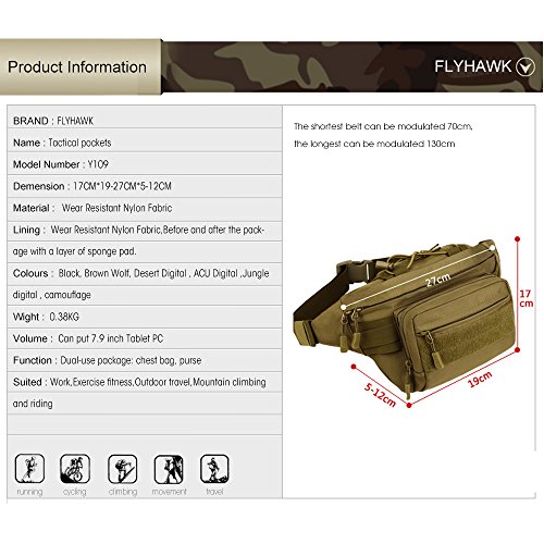 -. Title : FlyHawk Tactical Molle Pouch Waist Bags,Outdoor Daypack Shoulder Bag Crossbody Bag