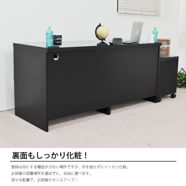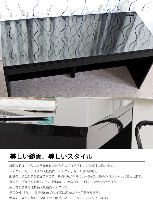 送料無料 オフィスデスク パソコンデスク 書斎机 鏡面 引き出し 2点 セット 2段 チェスト 150cm 木製 ブラック 北欧 おしゃれ モダン