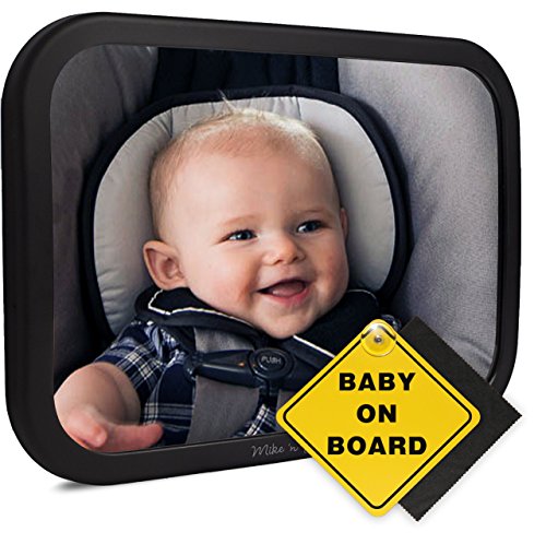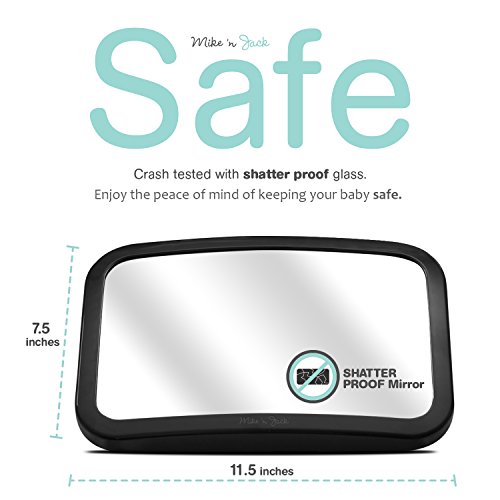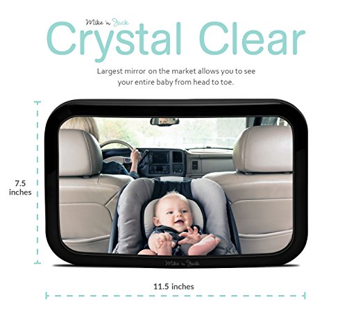 LARGE WIDE ANGLE CONVEX MIRROR - 11.5" wide by 7.5" tall. The large size and slight convex shape gives you a full view of your baby in the rear facing car seat. FREE microfiber cloth is included, use it to keep a crystal clear view of your newborn.