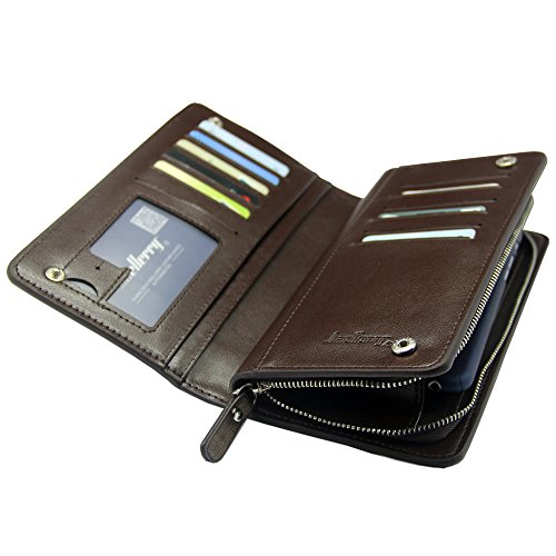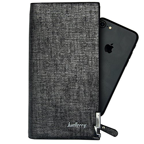 | Baellerry Business Men Wallets Solid PU Leather Long Wallet Portable Cash Purses Casual Wallets... |