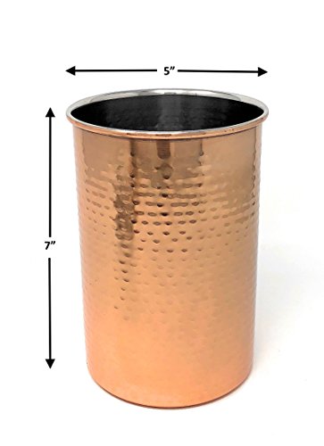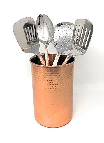 KITCHEN UTENSIL ORGANIZER: Utensil storage crock is made of stainless steel with copper finish.