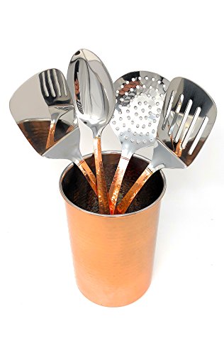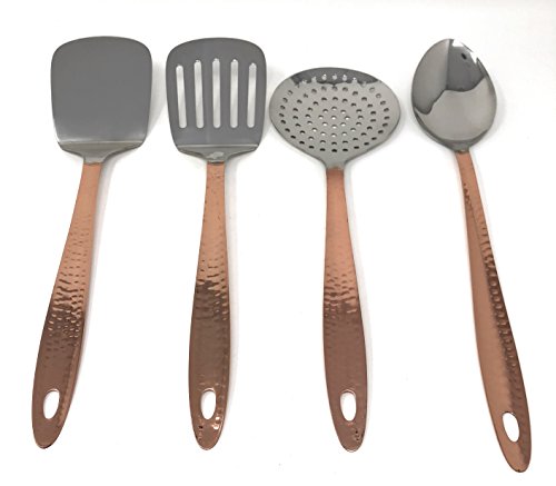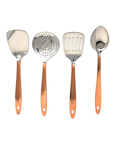 KITCHEN TOOLS SET: The set comes with stainless steel and copper finish Skimmer, Spoon, Slotted Spatula, and Solid Spatula.